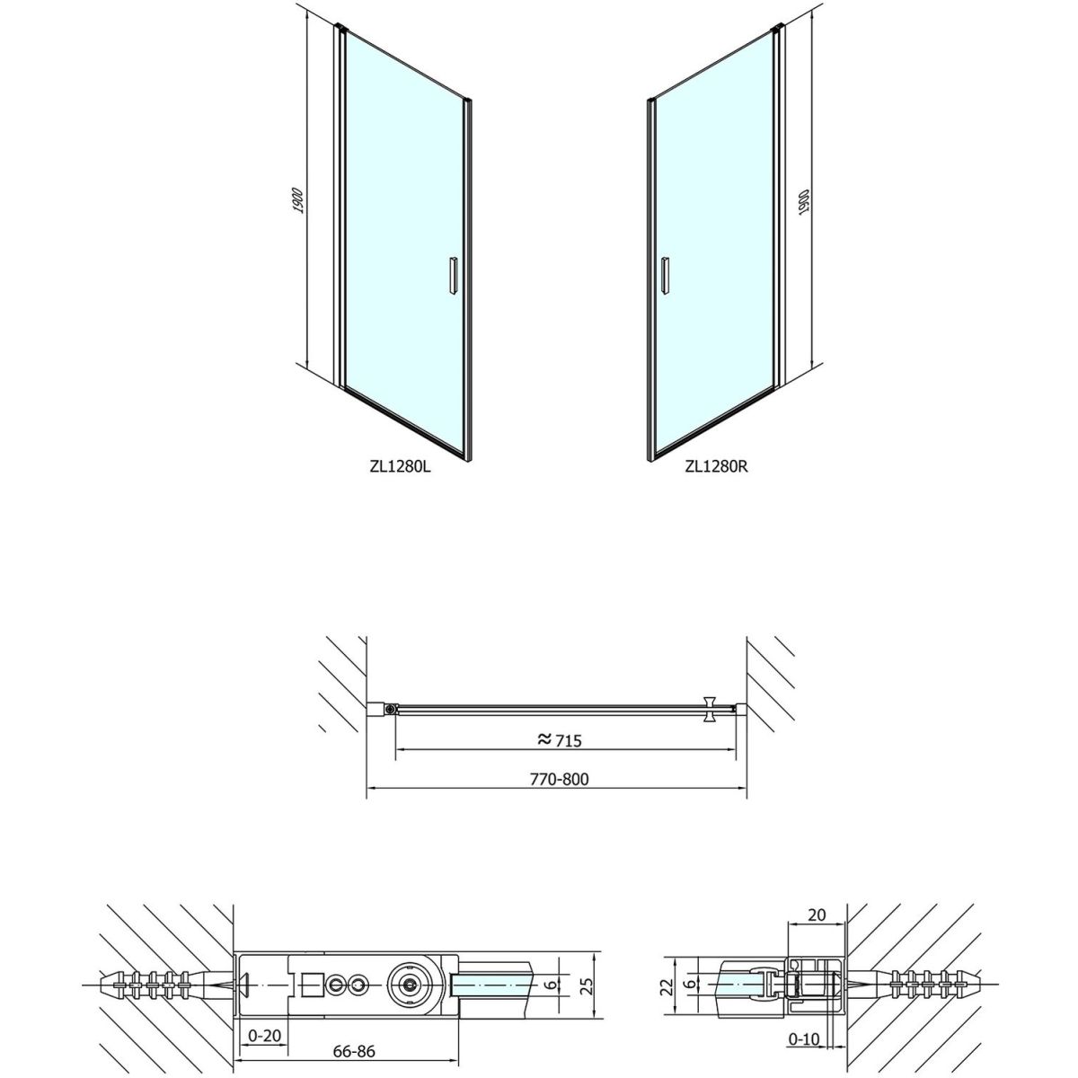 - dimensione di installazione con la parete laterale: 78 ± 1 cm