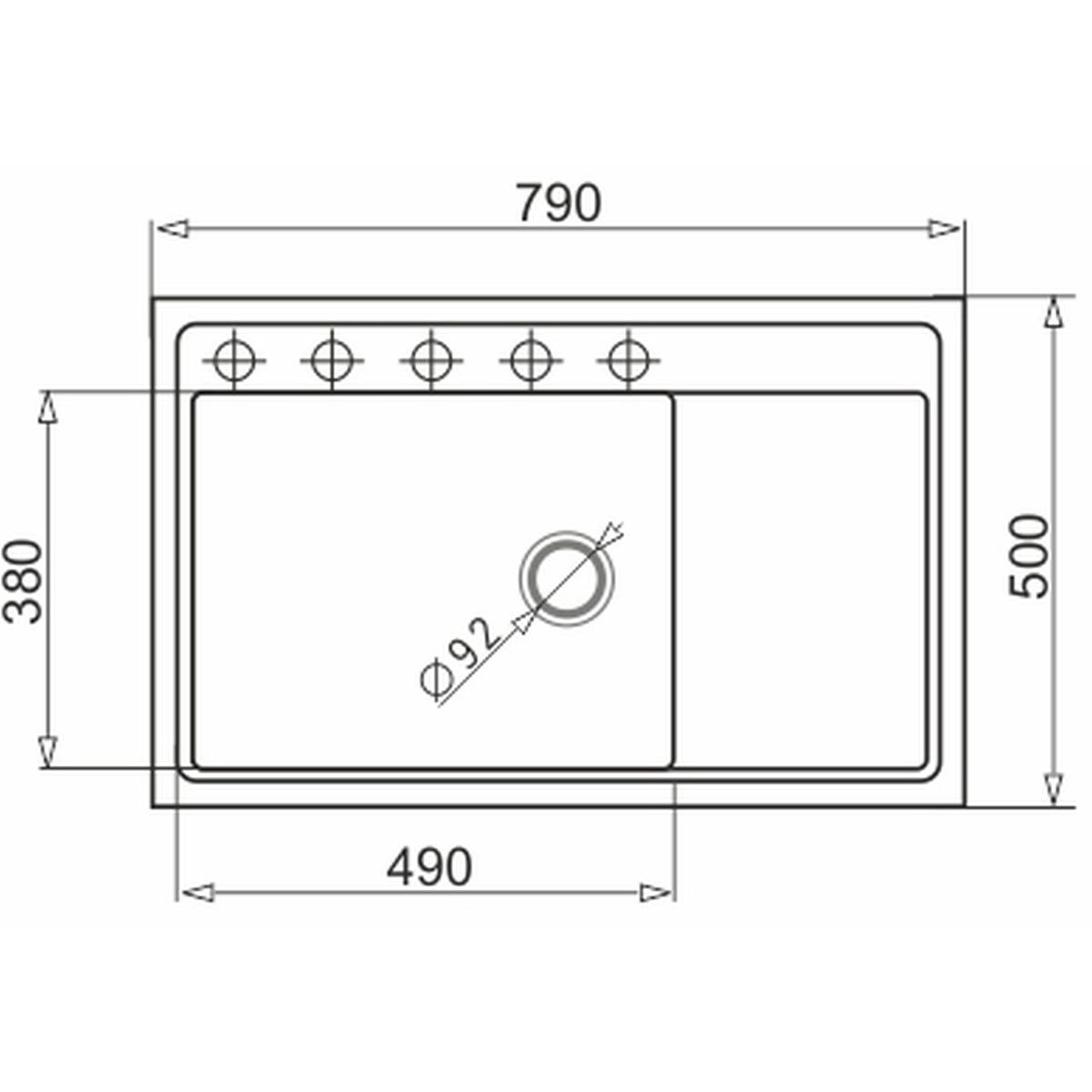 - 5 fori svasati per il libero posizionamento di miscelatori e altri accessori,