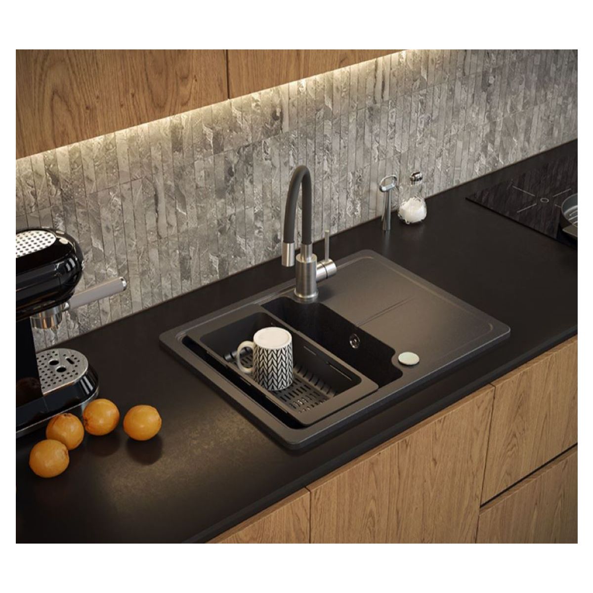Con le sue dimensioni compatte e una sottostruttura larga solo 40 cm, Baby Johnny 116 garantisce una vasca spaziosa e uno scolapiatti aggiuntivo, aumentando il comfort nell'uso quotidiano. Inoltre, gli spigoli arrotondati, i bordi stretti e l'abbassamento per gli accessori conferiscono al Baby Johnny 116 un aspetto elegante e delicato, rendendolo un elemento non solo pratico ma anche estetico di ogni cucina. Lo sgocciolatoio con scanalatura centrale scarica efficacemente e il bordo alto impedisce ai liquidi di schizzare fuori dal lavello. Il Baby Johnny 116 non solo facilita il lavoro quotidiano in cucina, ma lo rende anche più efficiente, aggiungendosi con stile a qualsiasi cucina.