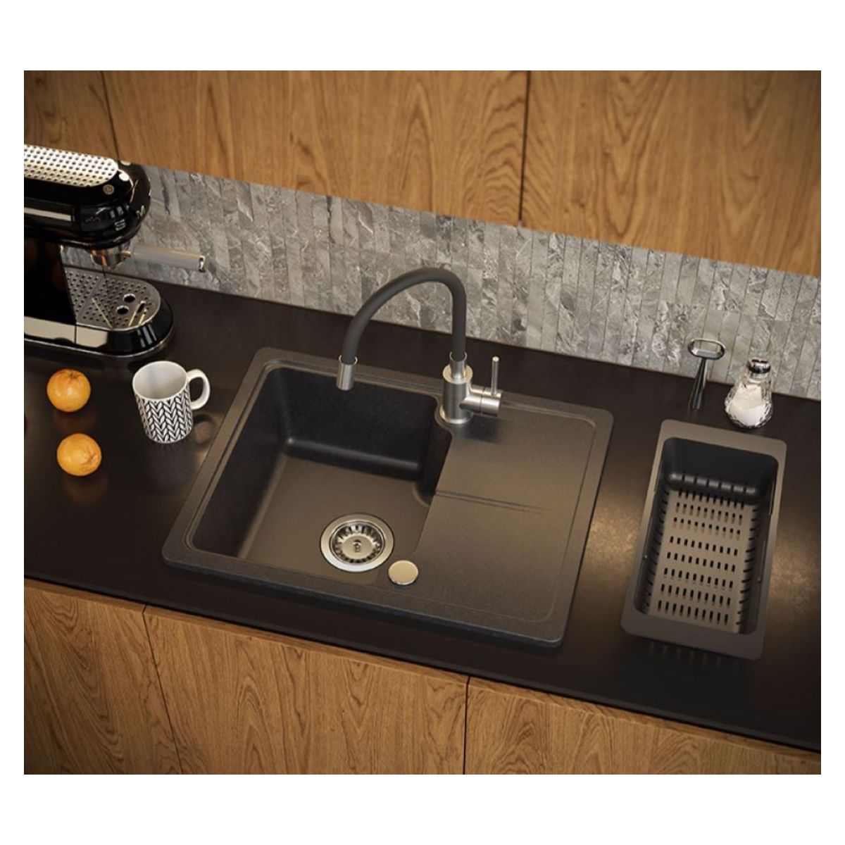 Il lavello Baby Johnny 116 in colore sabbia di fiume con elementi in acciaio si rivolge alla cucina piccola che non vuole rinunciare alla funzionalità . Questo lavello classico, realizzato in GraniteQ di alta qualità , è stato accuratamente progettato pensando agli spazi ridotti, pur mantenendo la praticità e la capacità della vasca.
