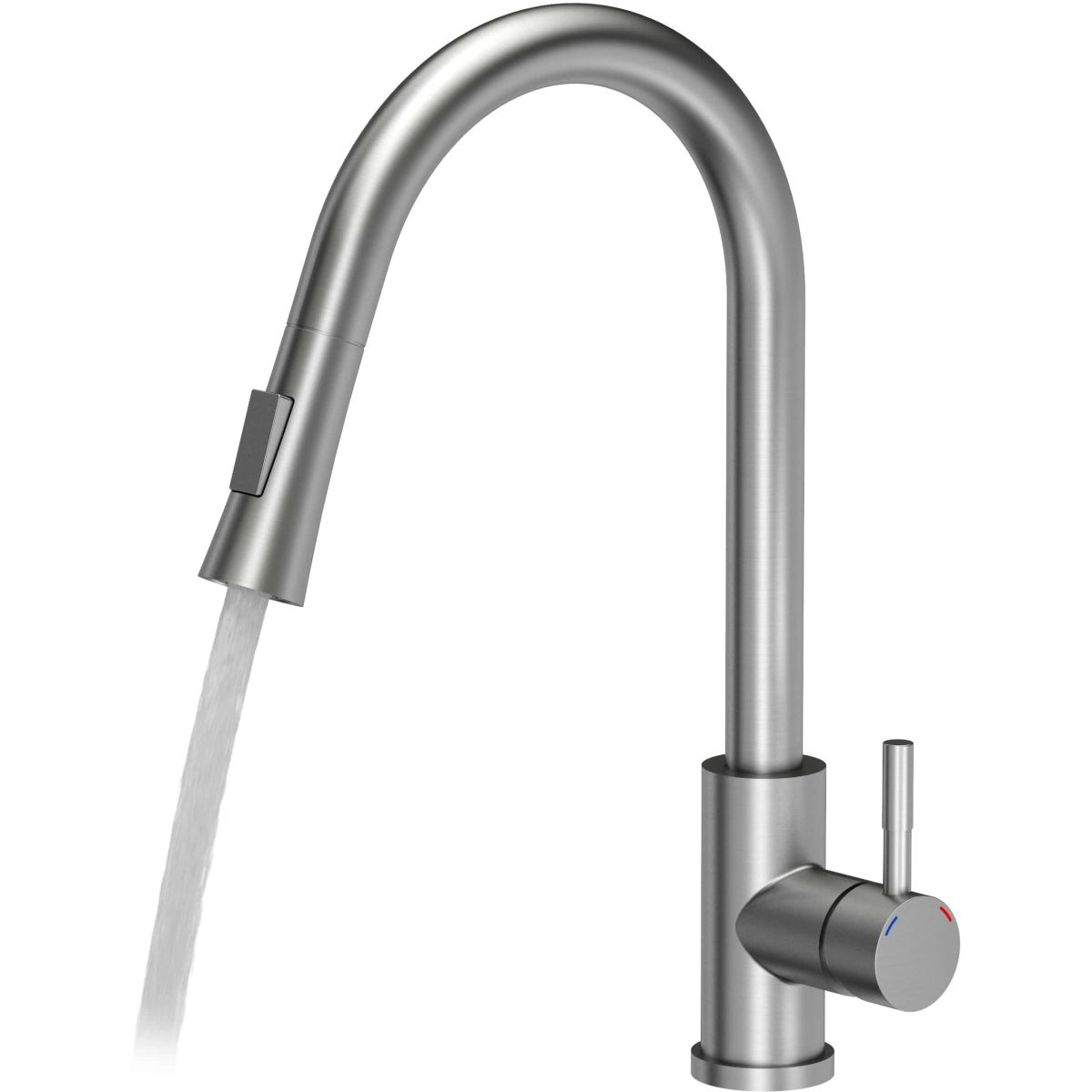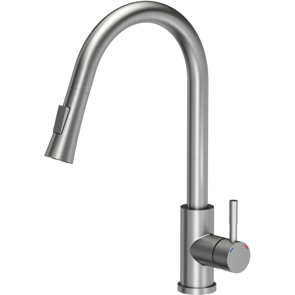- miscelatore in acciaio alto 42,5 cm con doccetta estraibile e interruttore per la funzione doccia (miscelatore con sistema di montaggio QFix, ovvero un dado senza attrezzi aggiuntivi)