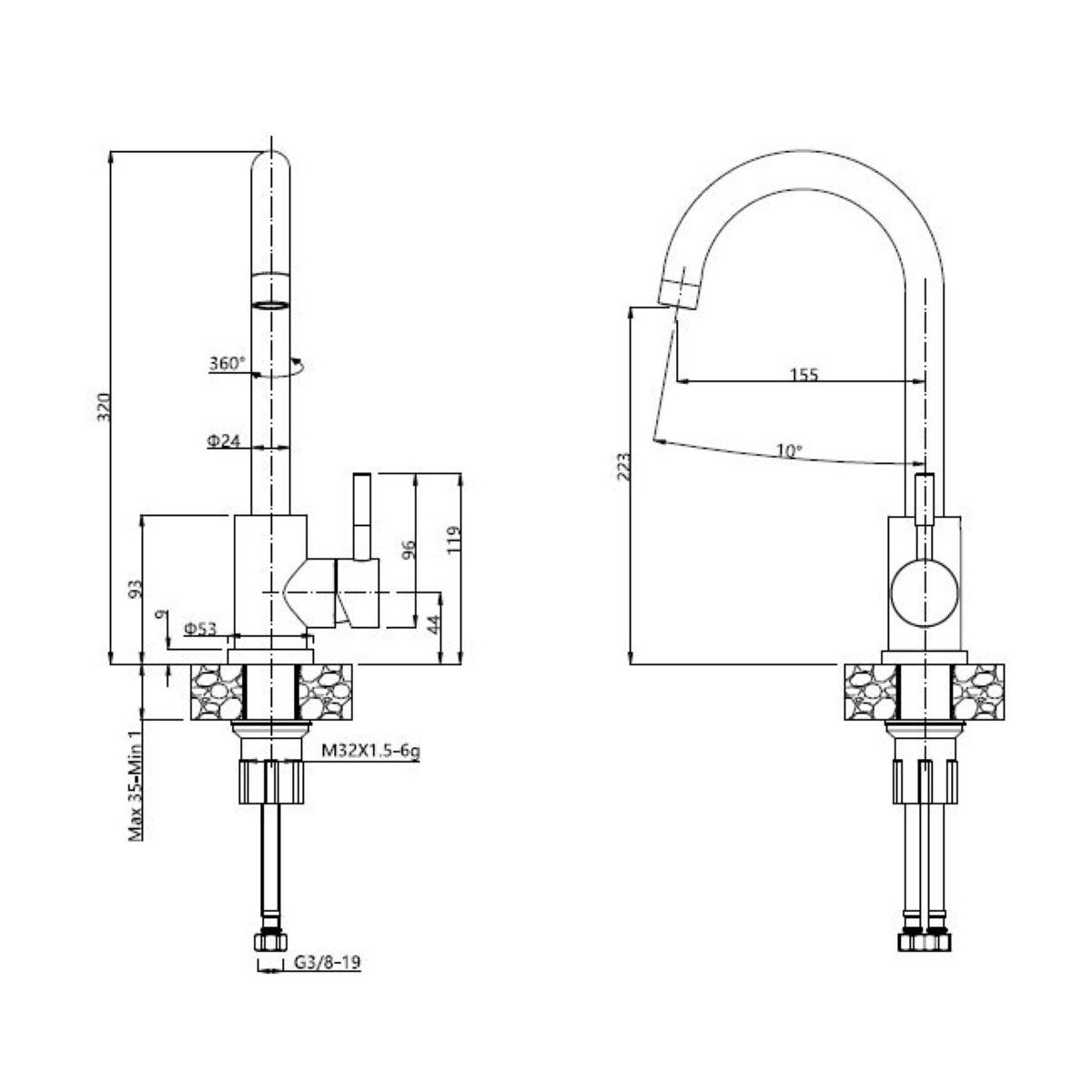 Il lavello può essere installato in mobili di larghezza a partire da 50 cm. È dotato di un sifone manuale con la possibilità di collegare una lavatrice/lavastoviglie.