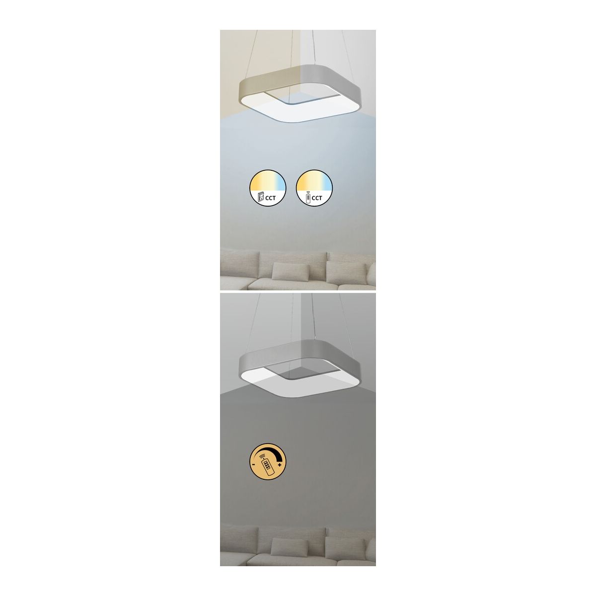 Dallo stile minimalista, la lampada a sospensione Adeline sarà un'aggiunta speciale al vostro salotto moderno, alla camera da letto o allo studio. Questa elegante lampada grigia con paralume bianco ha una serie di caratteristiche insolite: è dimmerabile, il che significa che la sua luminosità può essere modificata a piacere con un telecomando, e la sua temperatura di colore può essere regolata con un interruttore a parete o un telecomando. A seconda della scelta, la lampada può emettere luce calda, naturale o bianca.