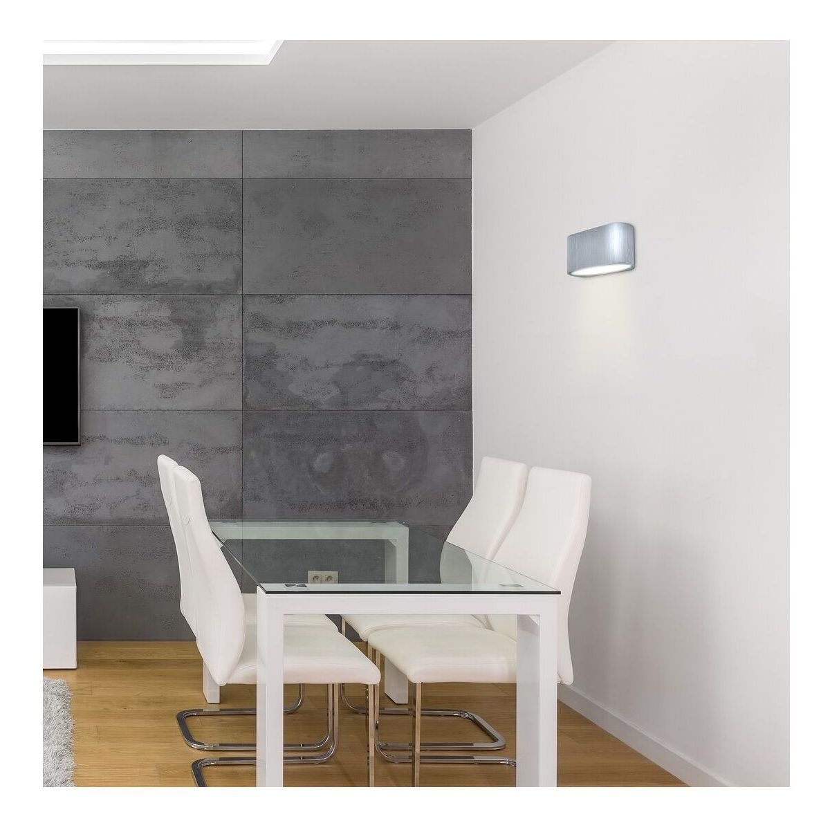La lampada da parete ovale minimalista Kaunas è un'aggiunta elegante a un soggiorno moderno, a una camera da letto, a uno studio o a qualsiasi altro spazio in cui la si collochi. La consigliamo soprattutto a coloro che desiderano fornire un'illuminazione uniforme, priva di ombre, non abbagliante e allo stesso tempo accogliente in una determinata stanza. Questo bellissimo modello, dal design semplice, è realizzato interamente in metallo in alluminio spazzolato e può essere utilizzato con una sorgente luminosa fino a 10W, attacco G9. Se volete creare un'atmosfera intima e accogliente, ad esempio in salotto o in camera da letto, scegliete per questa lampada una lampadina che emetta una luce bianca calda. Se invece installate Kaunas in uno studio, è meglio scegliere una sorgente luminosa con una luce naturale diurna che aiuti a mantenere la concentrazione. Dimensioni: larghezza 16 cm, altezza 8 cm, distanza dalla parete 8 cm. Questo modello viene fornito senza sorgente luminosa.