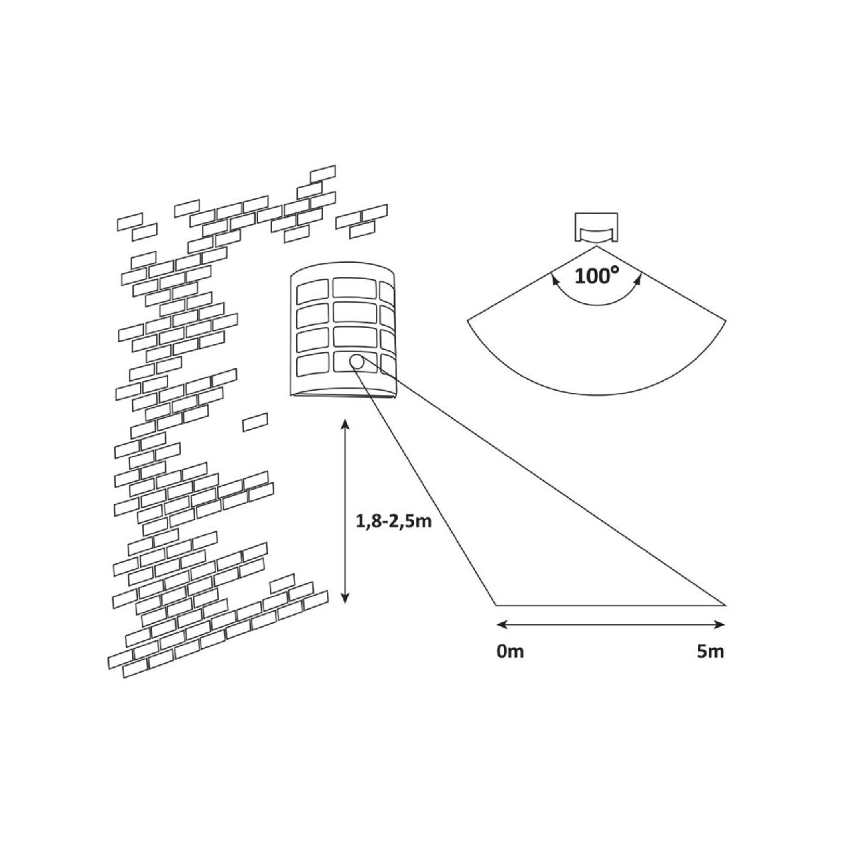 - il sensore rileva il movimento da una distanza di 2-8 metri con un angolo di 90°.
