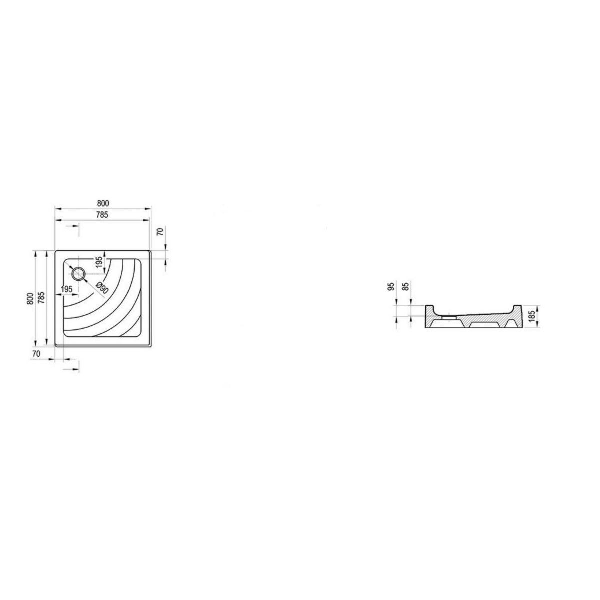 - profondità del piatto doccia: 9 cm