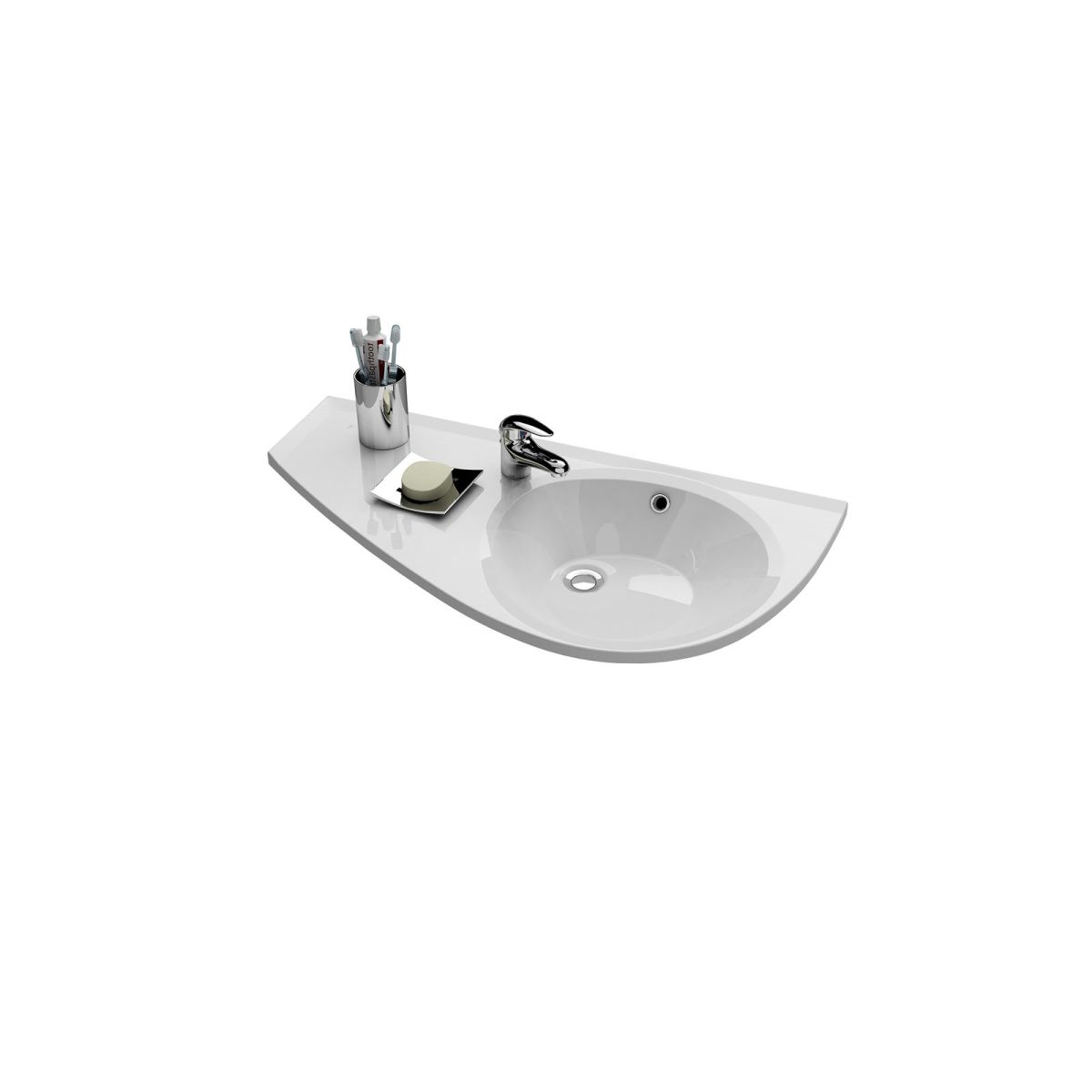 Il piano del lavabo ha un angolo retto, che lo rende perfetto anche per un angolo. A seconda della posizione, scegliete la versione destra o sinistra.