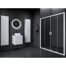 Porta doccia a quattro elementi Blix II in bianco opaco con vetro trasparente con protezione Ravak AntiCalc®. Sistema di apertura scorrevole.