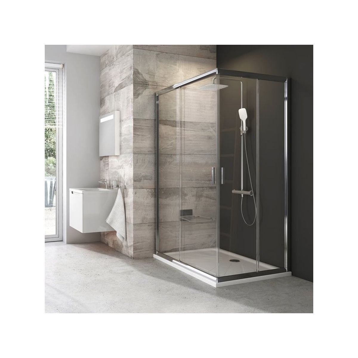 - installazione sopra un piatto doccia o direttamente sul pavimento con scarico integrato o griglia di scarico