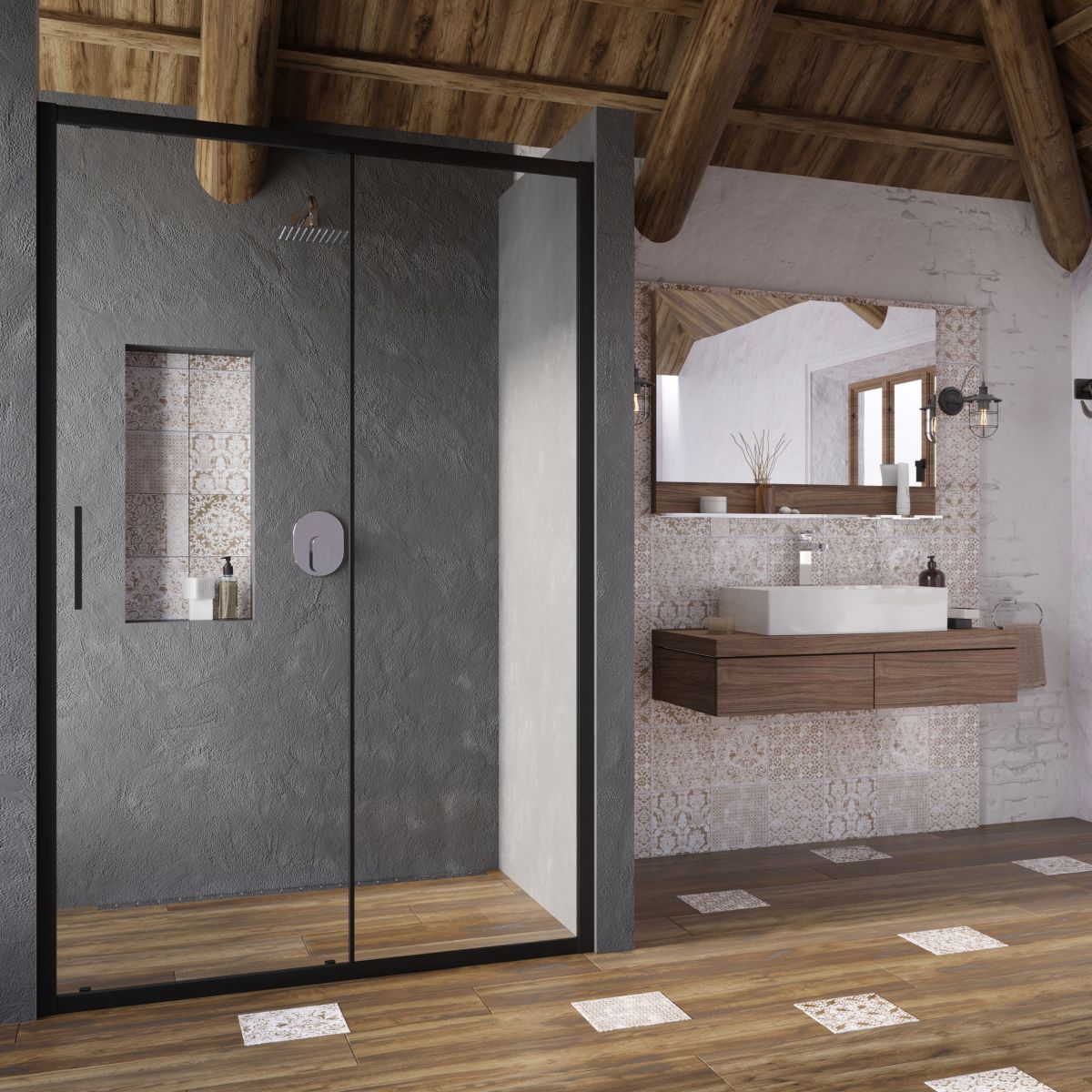 Porta doccia Ravak Blix Slim per incasso o in combinazione con la parete fissa BLSPS in nero opaco con vetro trasparente.
