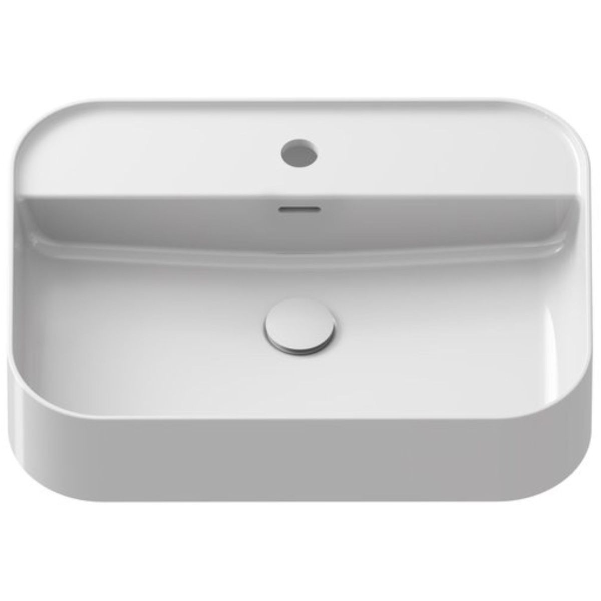 Lavabo in ceramica a parete sottile Ceramic Slim destinato al montaggio su piano o mobile, con troppopieno. Colore bianco.