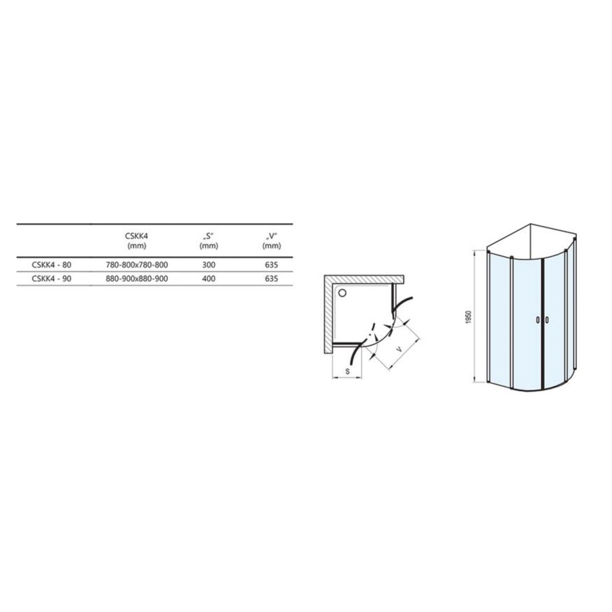 La cabina viene montata nell'angolo piastrellato del bagno su un piatto doccia Ravak: Elipso Pro, Elipso Pro Chrome, Elipso Pro Flat o direttamente sul pavimento con scarico lineare integrato o griglia di scarico. Il set include due supporti metallici. Raggio 500 mm.