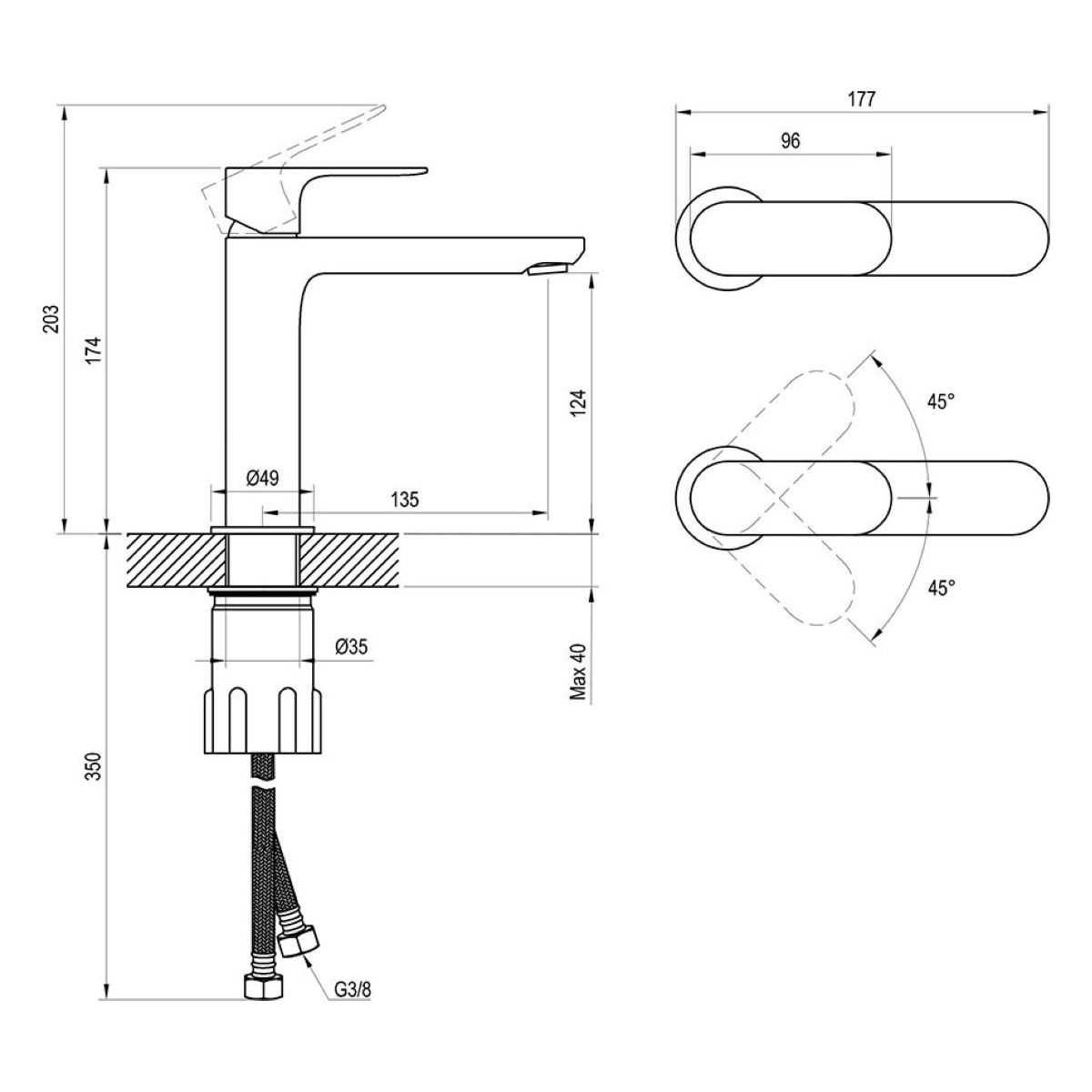 - altezza del rubinetto: 174 mm
