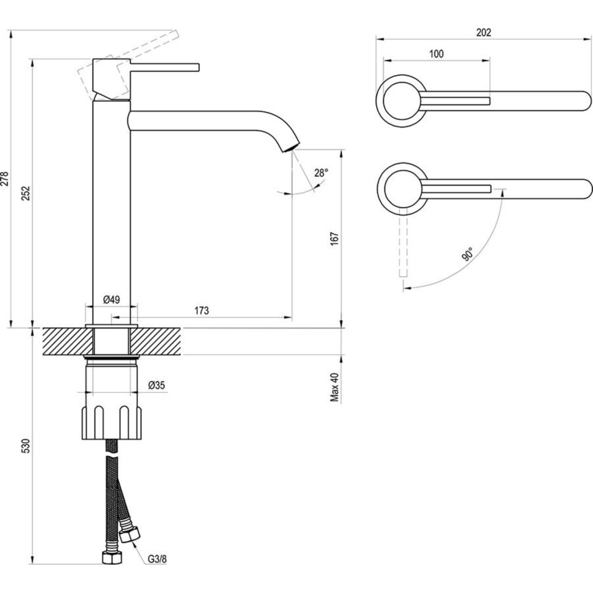 - tubi di collegamento: flessibile 700 mm, diametro DN6, G3/8