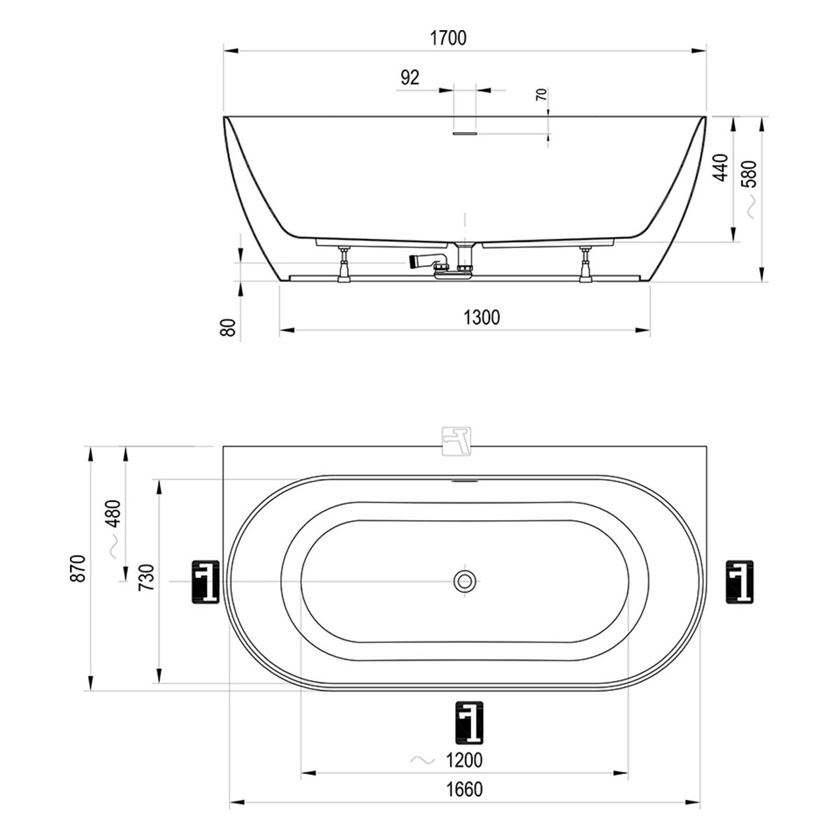 La vasca non può essere completata con una griglia per vasca. Il set di scarico (cioè troppopieno, sifone) e i supporti (piedini) sono inclusi.
