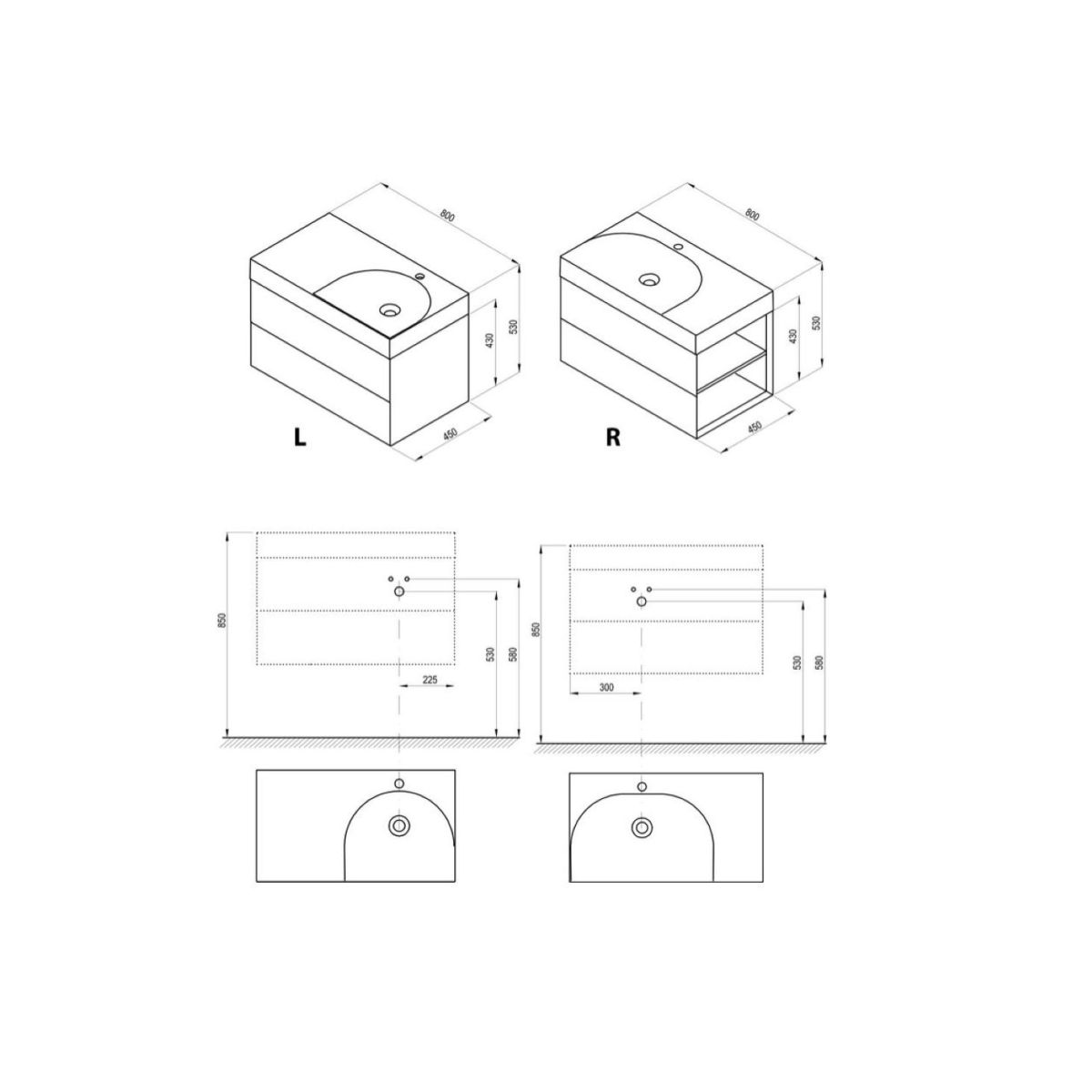 Il prezzo si riferisce al solo mobile, senza lavabo/rubinetto.