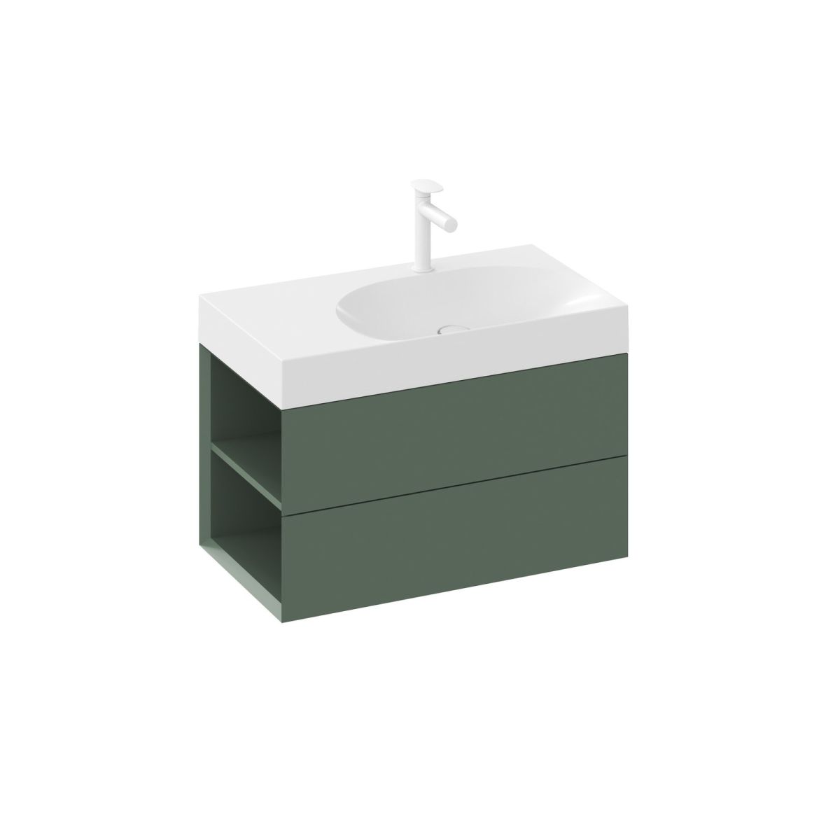 Mobile lavabo SD Lite dal design grigio-verde. Versione sinistra.
