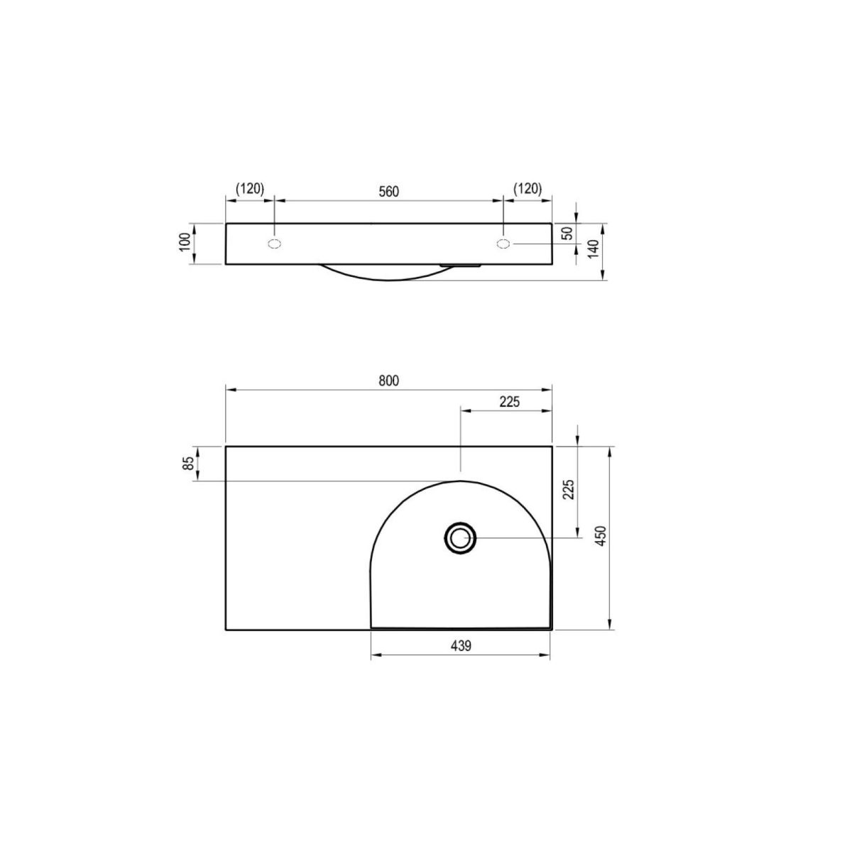 Lavabo Lite 80/45 L con vano portaoggetti a sinistra. Il lavabo non è dotato di troppopieno, quindi per evitare il traboccamento è necessario utilizzare un porta lavabo fisso. Il lavabo è progettato per essere abbinato a un miscelatore da incasso per lavabo. È incluso un kit di montaggio (perni di collegamento, viti, ecc.). Può essere montato a parete o completato con un mobile lavabo SD Lite 80 o SD Lite 80 L.