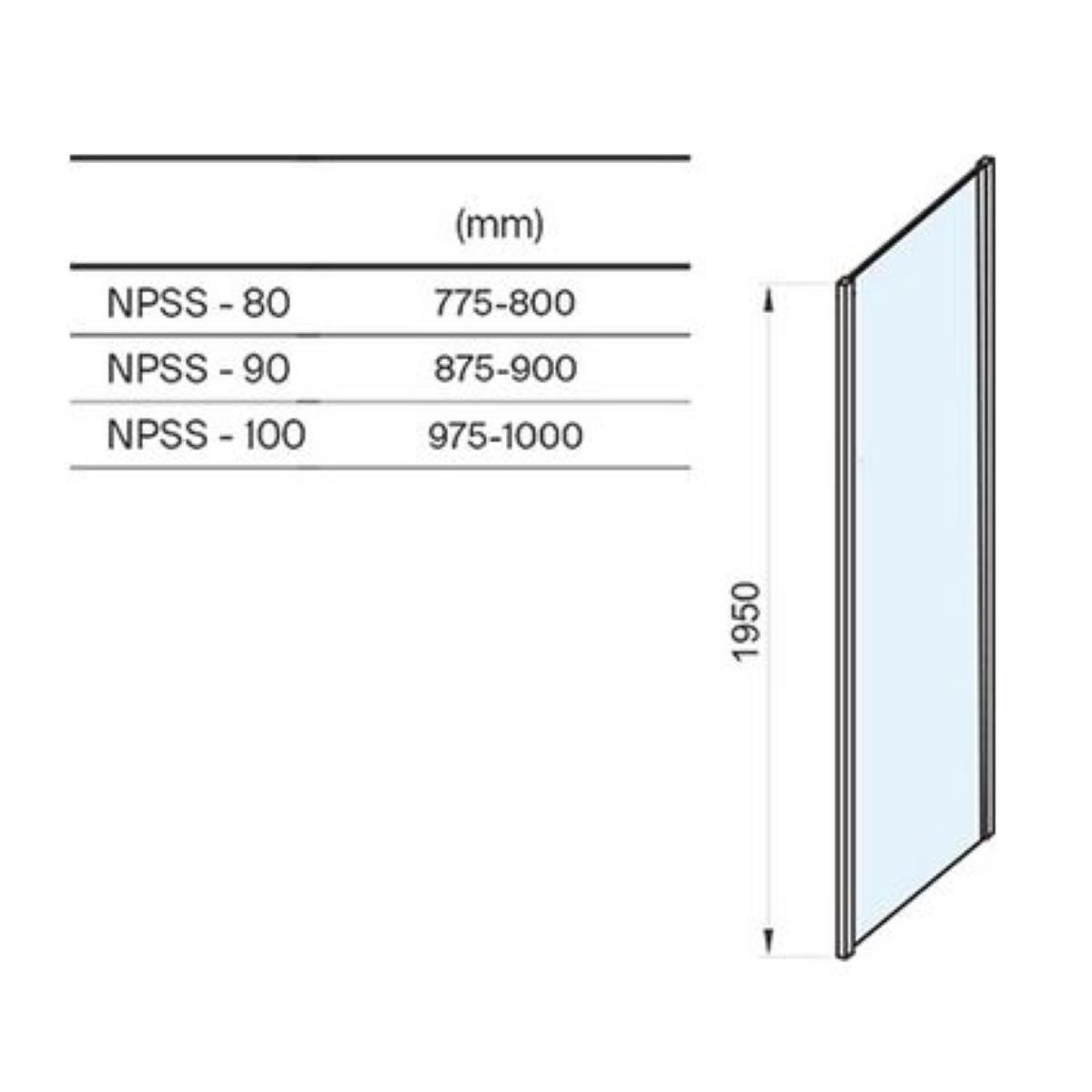Il prodotto è composto da un unico elemento fisso ed è stato progettato per essere abbinato alle porte doccia (non è un prodotto autonomo). La foto mostra la soluzione completa. Il prezzo si riferisce alla sola parete NPSS. Il prodotto può essere montato esclusivamente con le porte doccia della serie NEXTY NDOP1 o NDOP2!