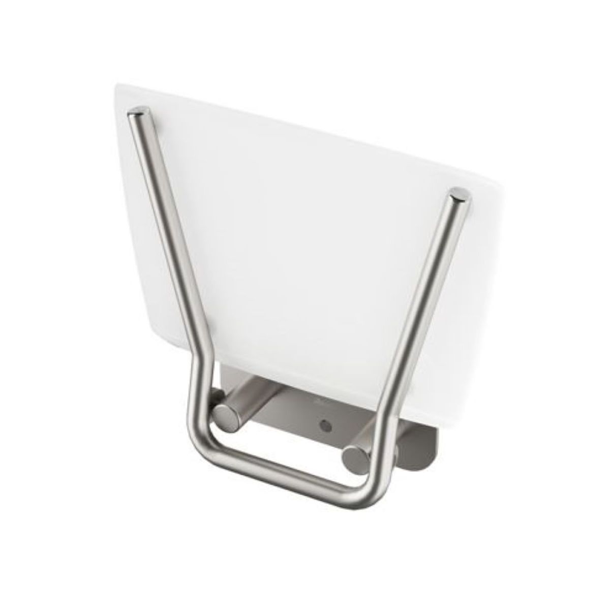 Sedile pieghevole per doccia Ovo B II. Struttura in acciaio inox con sedile trasparente. Forma quadrata.