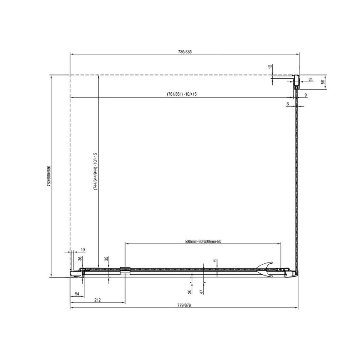 Piccole imprecisioni di costruzione? Non preoccuparti: Pivot ha la soluzione. I suoi profili di montaggio consentono di regolare la cabina doccia su ogni lato fino a 50 millimetri.