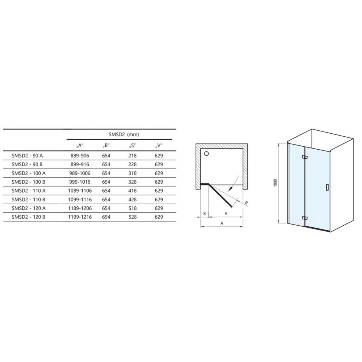 Montaggio nella nicchia del piatto doccia Ravak: Angela, Perseus Pro, Perseus Pro Flat, Perseus Pro Chrome, Gigant Pro, Gigant Pro Flat, Gigant Pro Chrome o direttamente sul pavimento con scarico lineare integrato o griglia di scarico. La variante A è destinata ad aperture di 11 mm inferiori alle dimensioni standard del prodotto. Per il collegamento con una parete fissa, si consiglia di scegliere porte di tipo B.