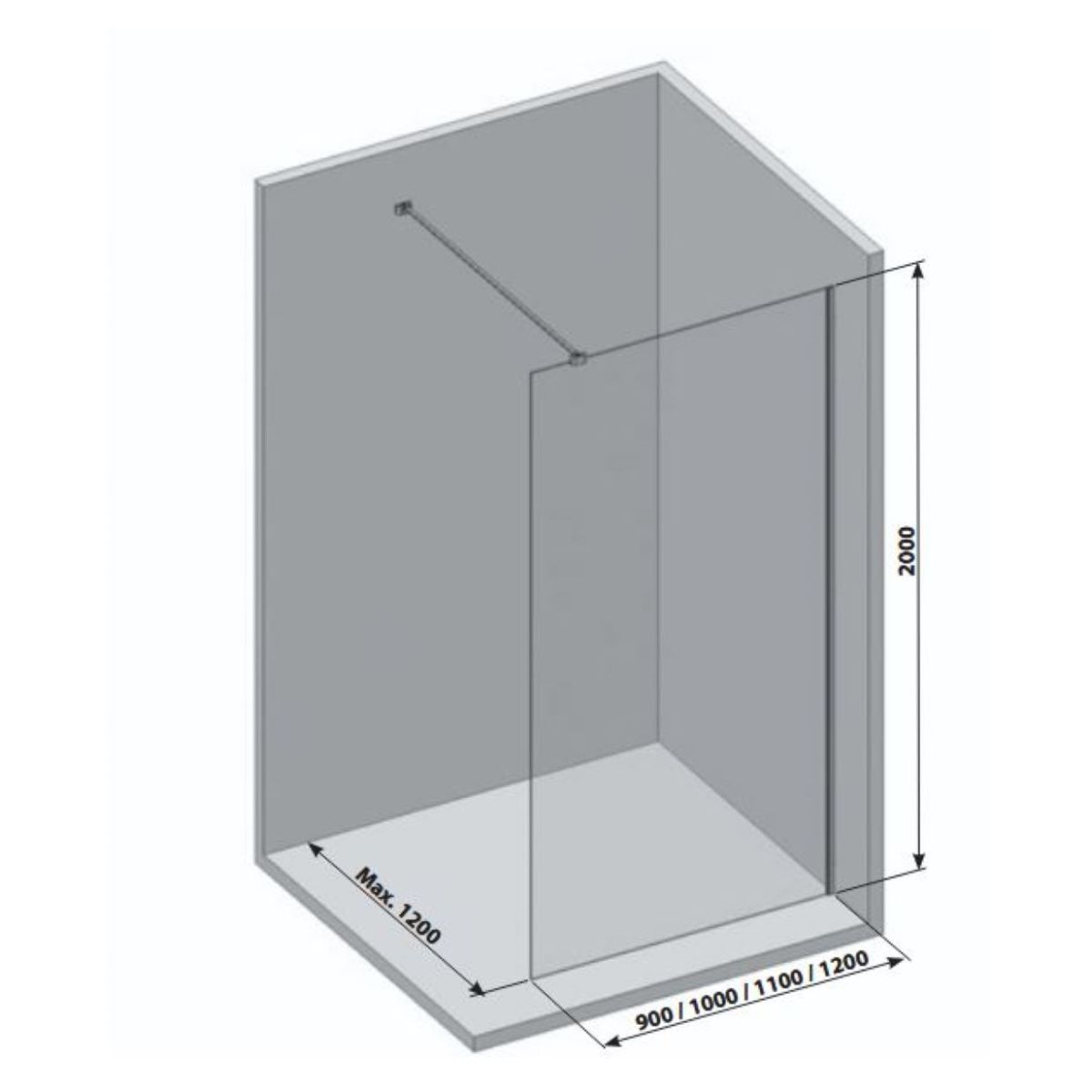 - larghezza del pannello in vetro Walk-In Air Wall: 120 cm
