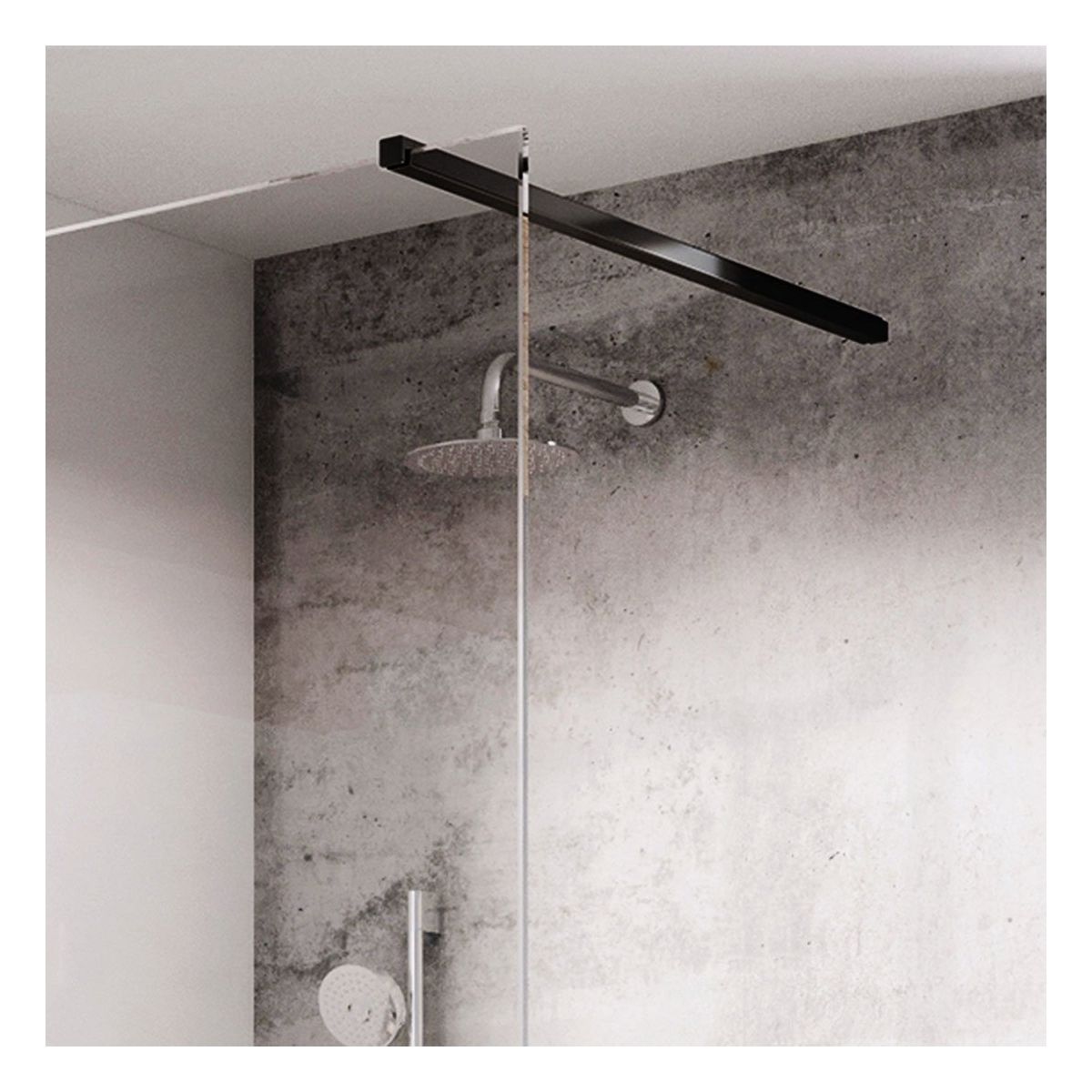 - una serie di montanti e staffe metalliche tiene saldamente in posizione grandi superfici di vetro e garantisce la stabilità della parete walk-in, della doppia parete o dell'angolo libero