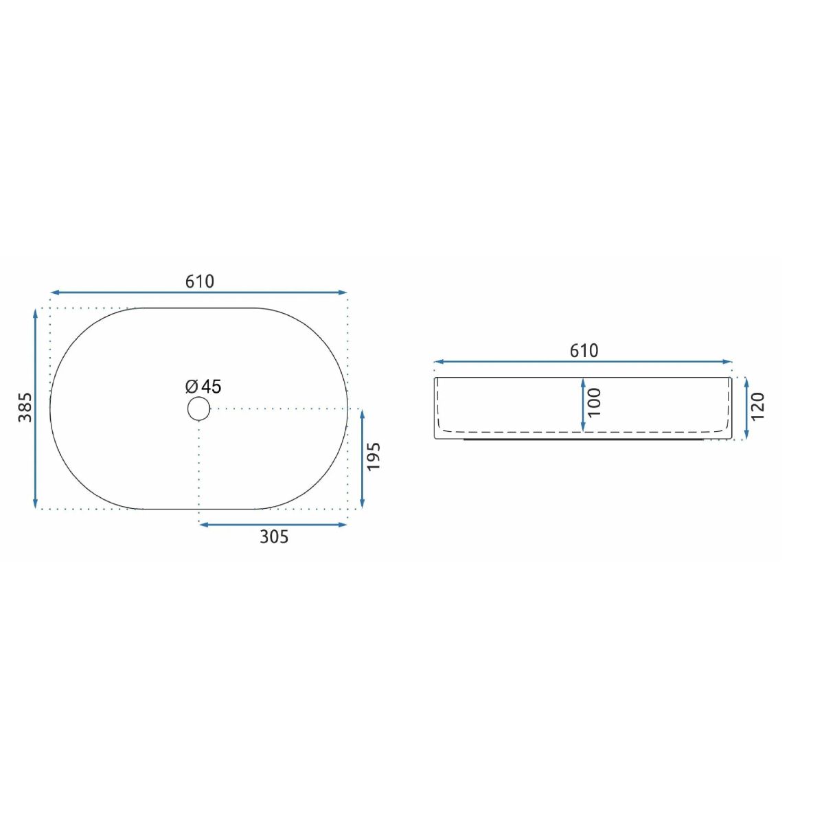 Rea Nadia lavabo 61x38.5 cm ovale da appoggio nero REA-U8565