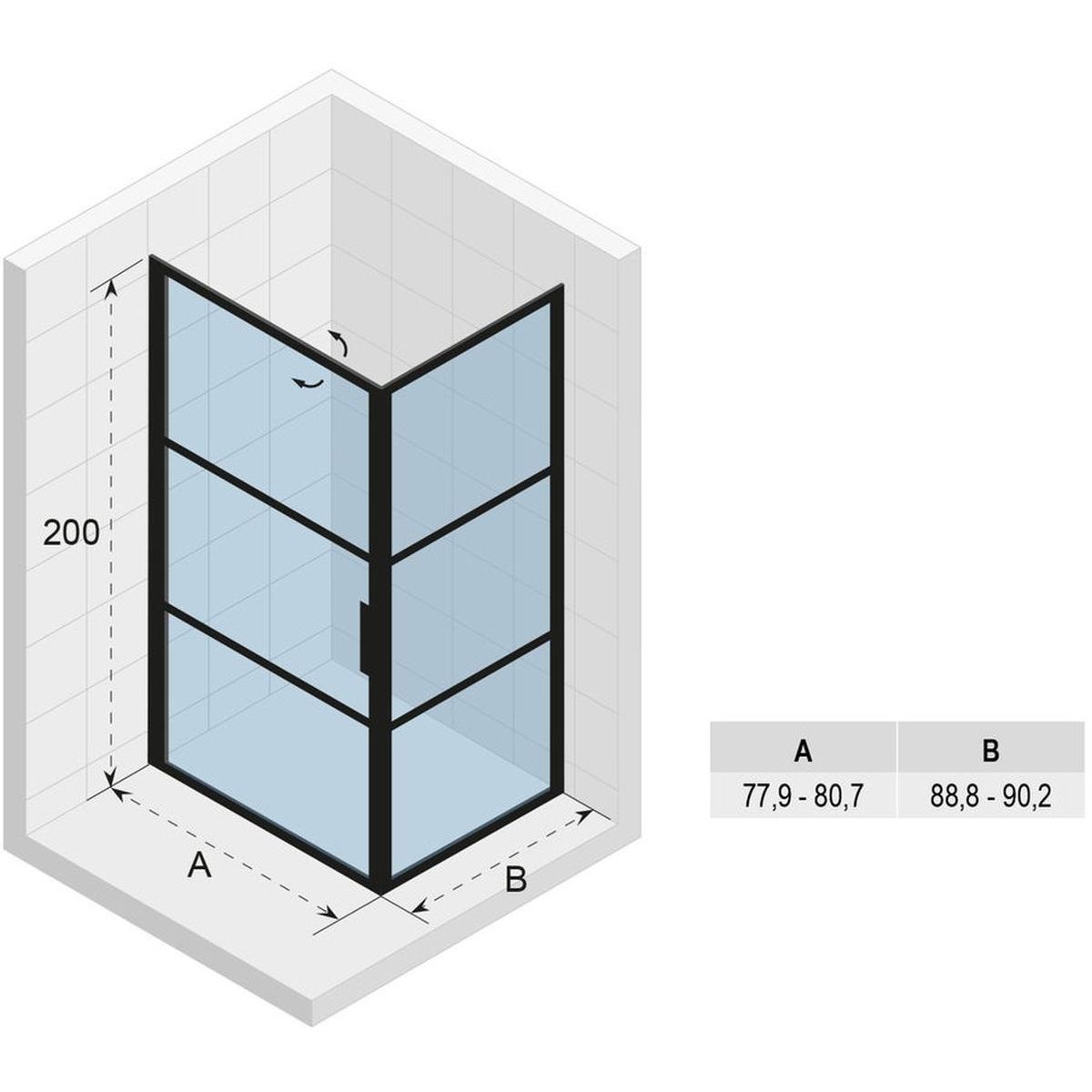 Riho Grid box doccia 90x80 cm rettangolare nero opaca/vetro con motivo G004008121