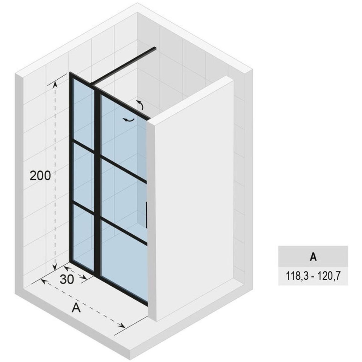 Riho Grid porta doccia 120 cm a battente nero opaca/vetro con motivo G004005121