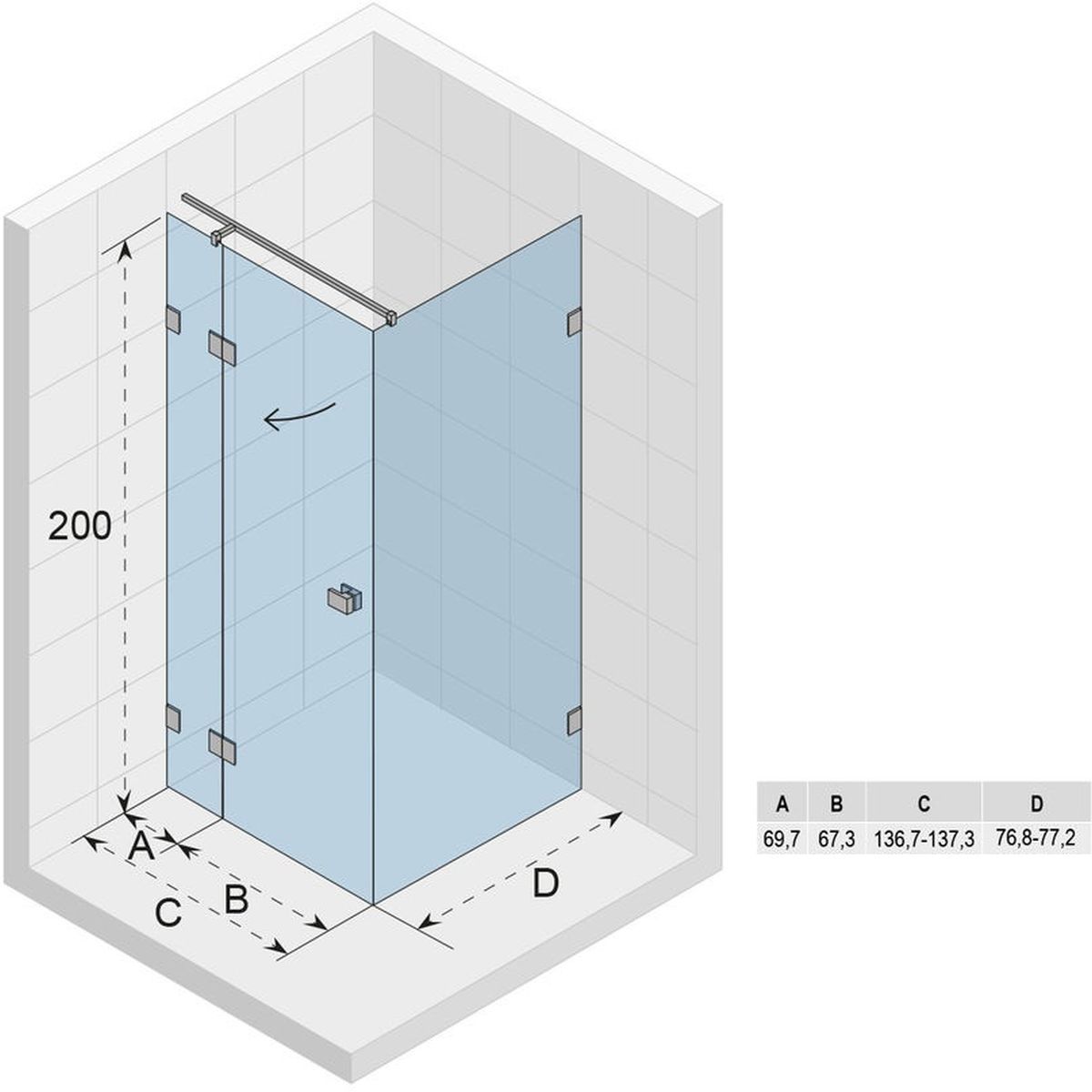 - larghezza del pannello fisso della porta (A): 69,7 cm