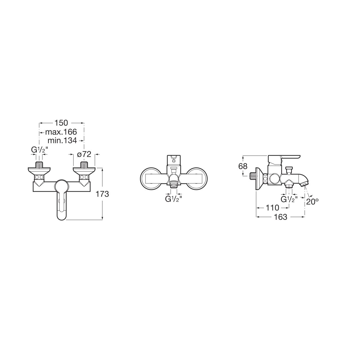 Roca Carelia rubinetto per vasca e doccia a parete cromo A5A028AC0K