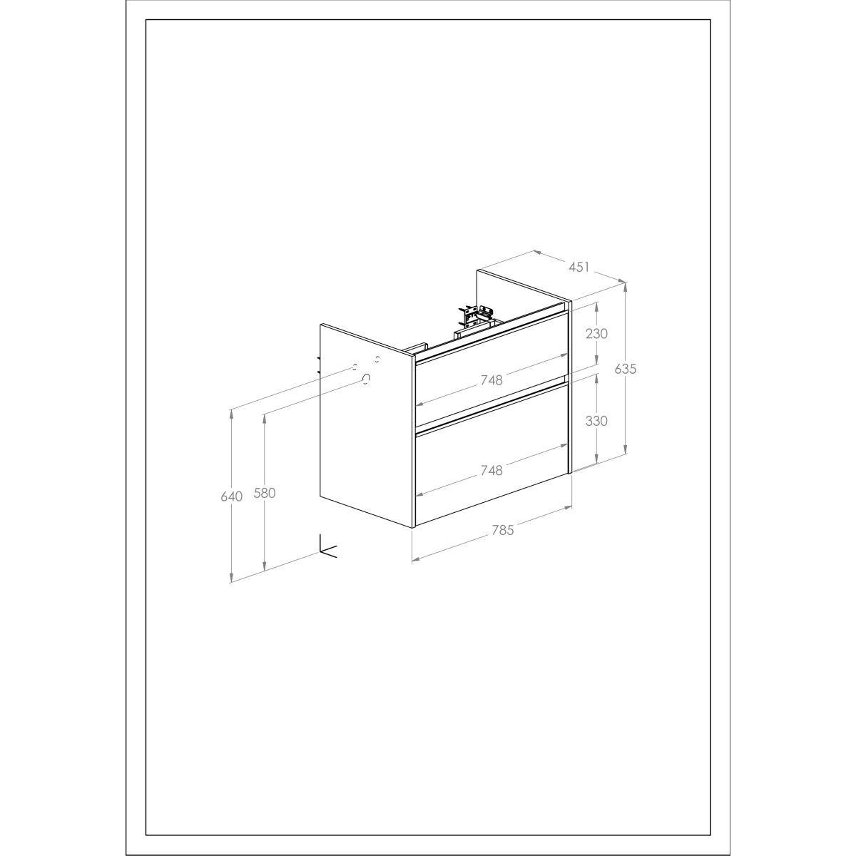 - Possibilità di combinazione di ante e cassetti: 2 cassetti