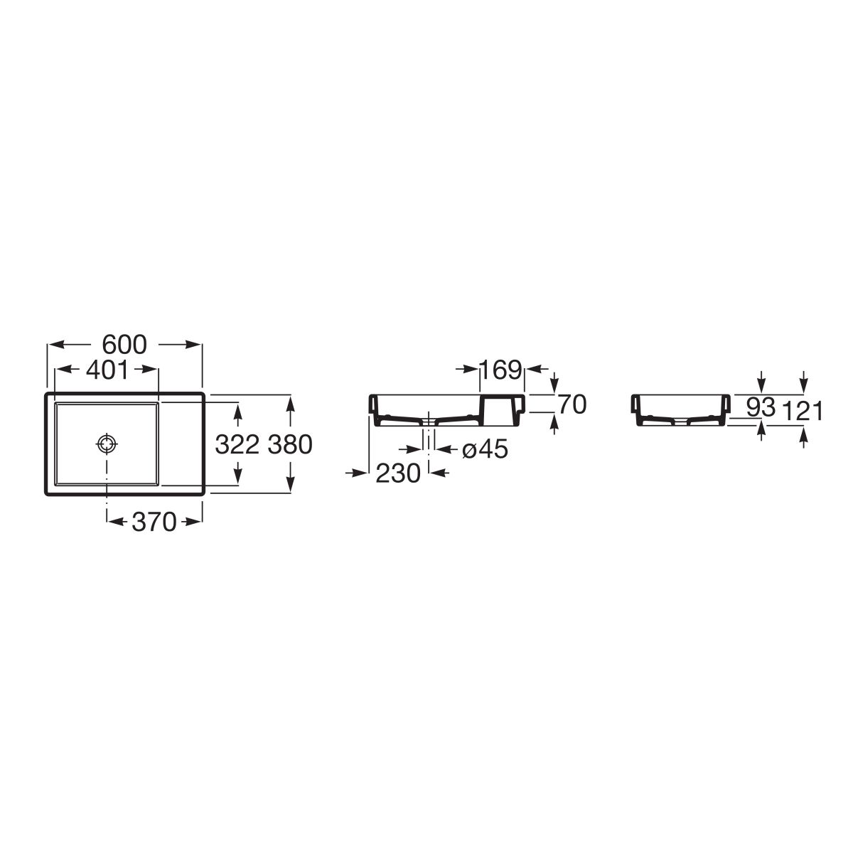 Roca Horizon lavabo 60x38 cm da incasso nero A32727508B
