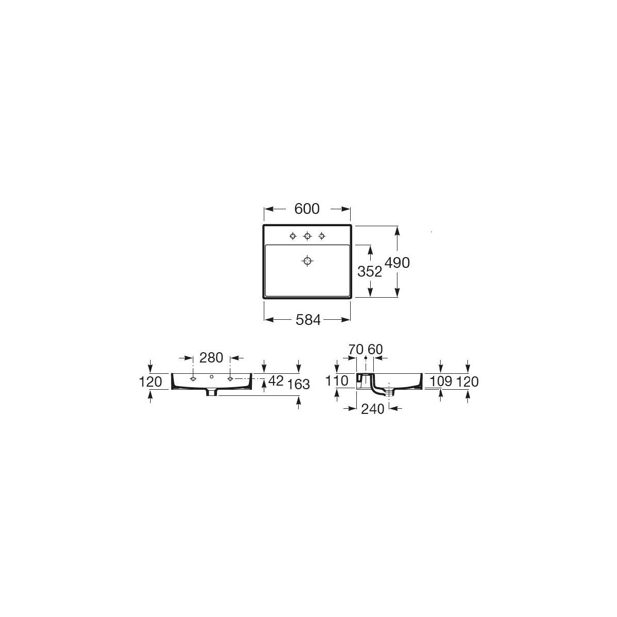 Roca Inspira lavabo 60x49 cm rettangolare a parete grigio/pietra A32752C640