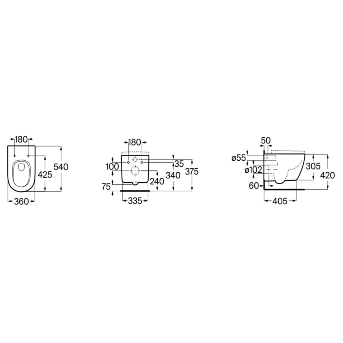 Roca Meridian vaso wc sospeso senza brida con scarico a vortice bianco opaco A346747620