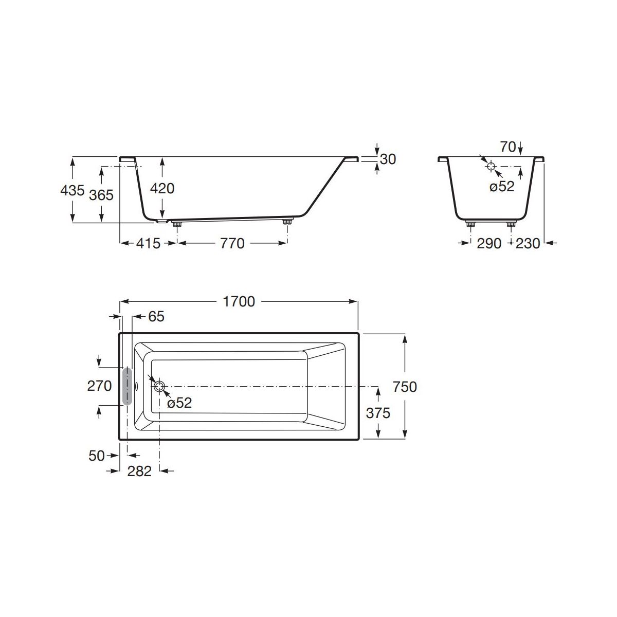 Roca Vythos vasca da bagno rettangolare 170x75 cm bianco A248552000