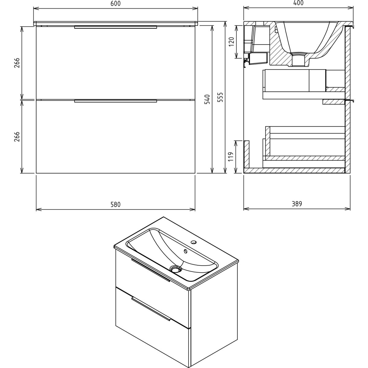 Versione: sottolavabo sospeso