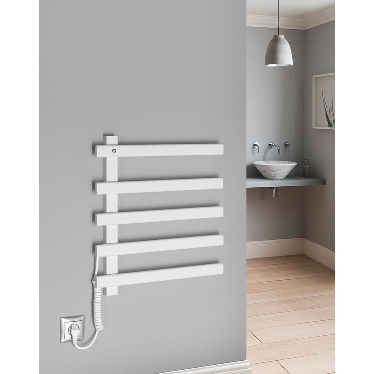 I riscaldatori elettrici ELCOR in acciaio inox laccato sono progettati per riscaldare e asciugare gli asciugamani, cosa che apprezzerete soprattutto in inverno. Il riscaldamento è fornito da un cavo di resistenza in fibra di carbonio (senza liquido), l'interruttore illuminato si trova sul lato superiore sinistro.