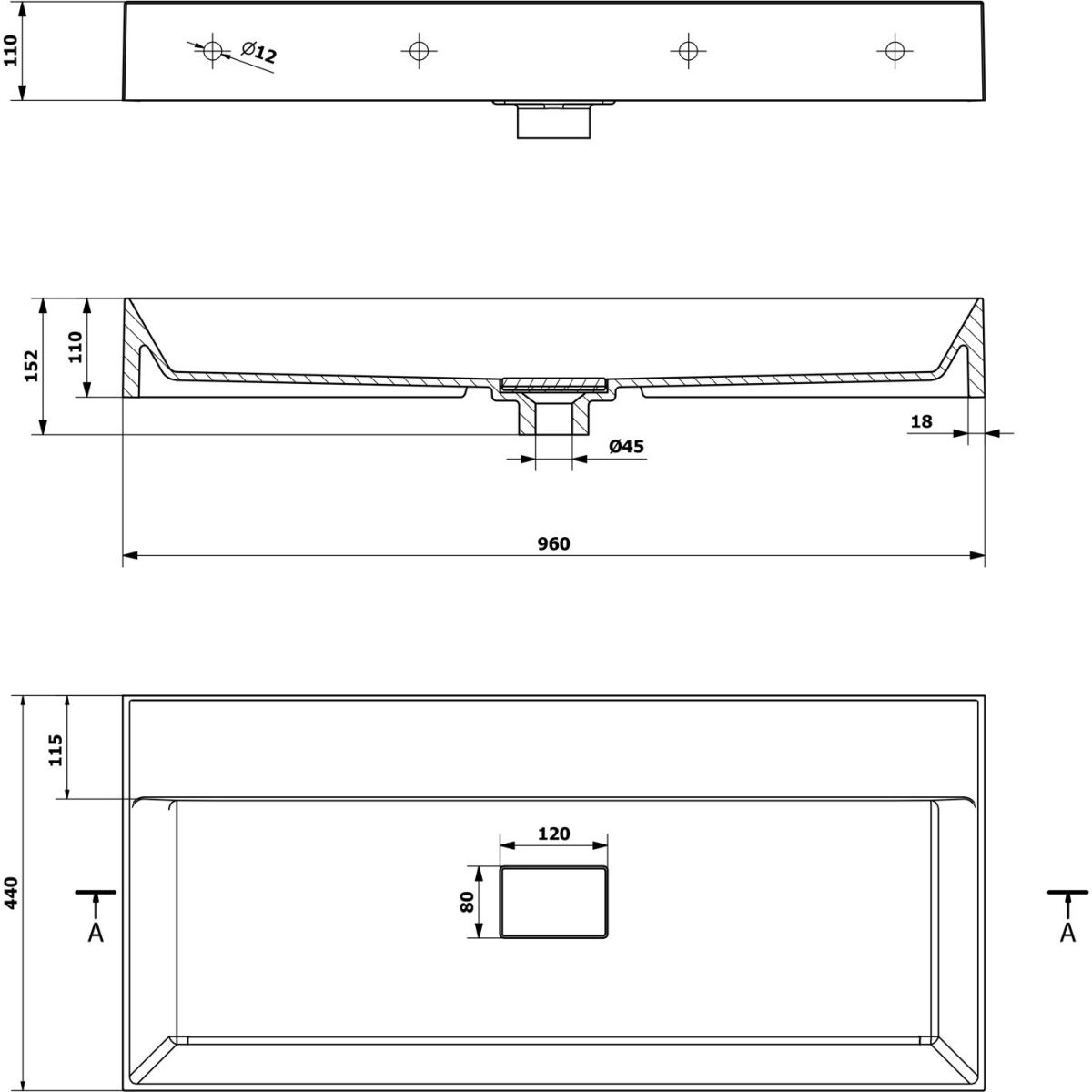 Sapho Godiva lavabo 96x44 cm rettangolare a parete-da mobile bianco GU096-0