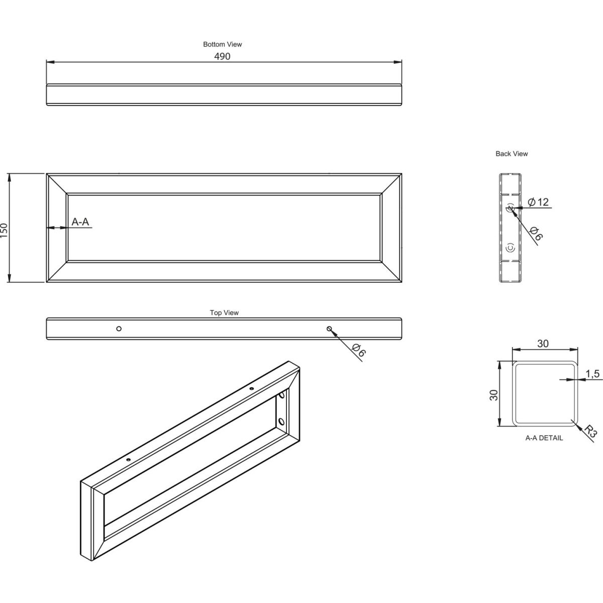 - dimensioni: 49x15x3 cm