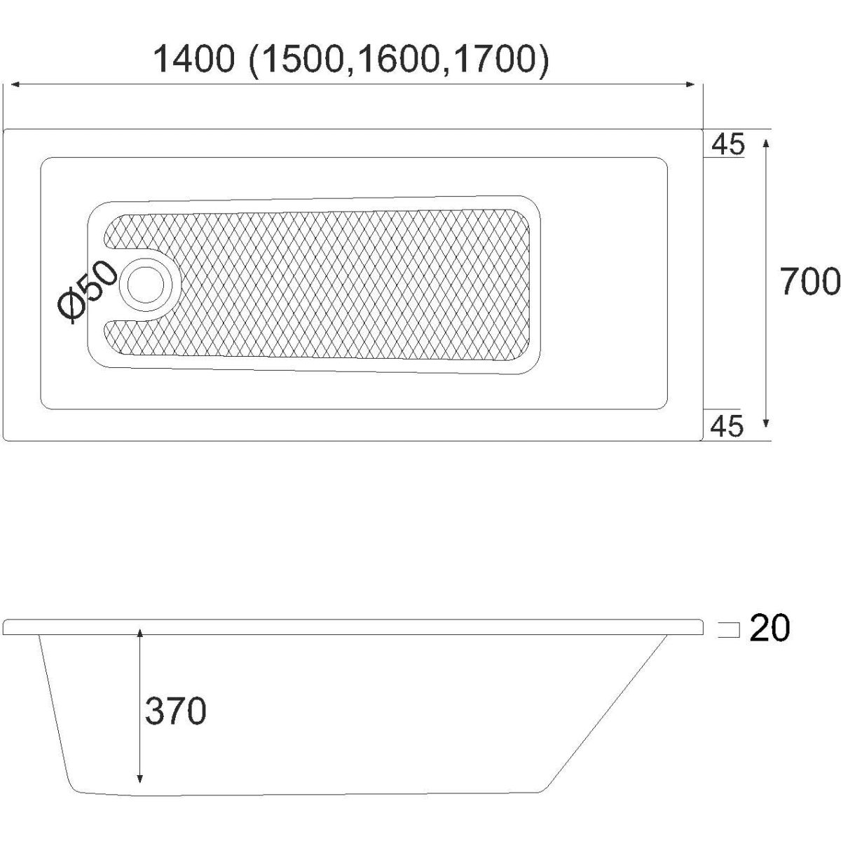 Schedline Atum vasca da bagno rettangolare 140x70 cm bianco 3WST.A1P-14070