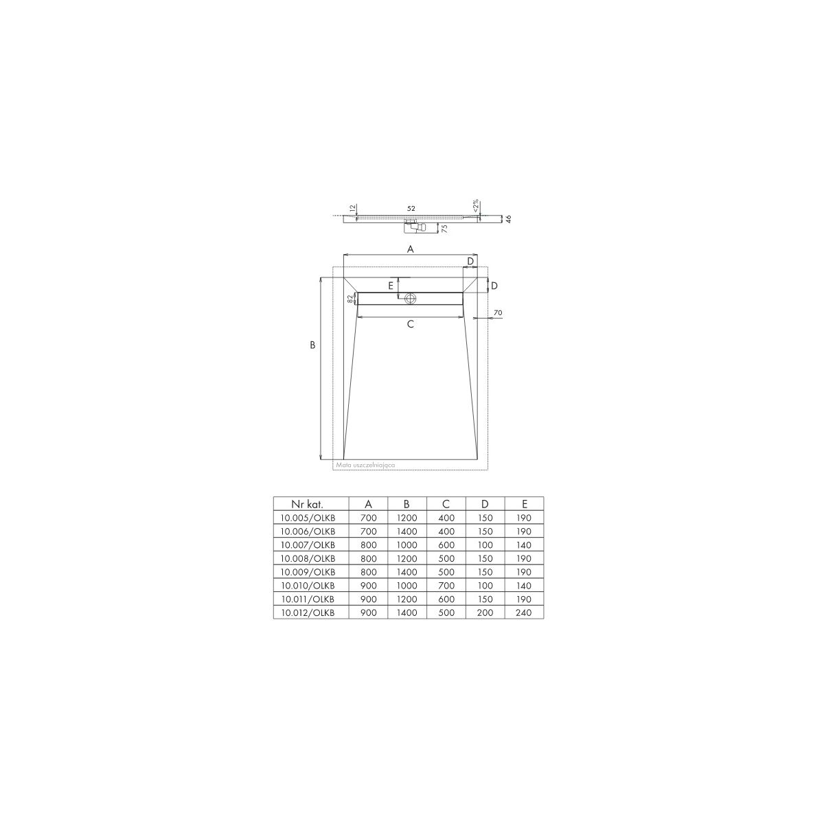 Schedpol Base piatto doccia sottopiastrelle 60 cm 10.011/OLKB/SL