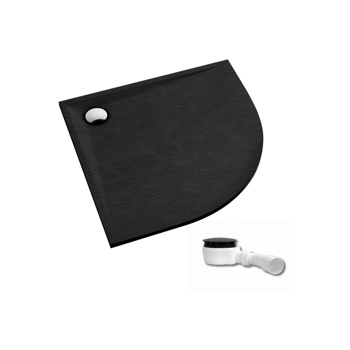 La serie Etrusco Black Stone unisce natura ed eleganza nel design del bagno. La texture della superficie in pietra nera non solo aggiunge fascino all'area doccia, ma garantisce anche la sicurezza d'uso: il piatto doccia ha una classe antiscivolo A (secondo la norma DIN 16165 - rif. A.). Il piatto doccia è dotato di un sifone con fungo nero opaco (portata 66 l/min). La pendenza strutturale della superficie (fino al 2%) garantisce un drenaggio dell'acqua senza problemi, sottolineando al contempo il design moderno. I piatti doccia in composito realizzati con la tecnologia Stabilsound Plus sono robusti, stabili su tutta la superficie e resistenti agli urti. L'installazione è facile e veloce, un'operazione che richiede una sola persona. È possibile tagliare il piatto doccia su misura e adattarlo a qualsiasi bagno.