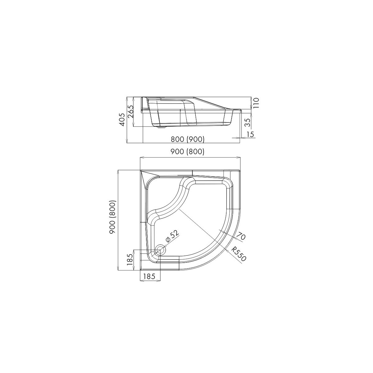 Schedpol Go Baby piatto doccia semicircolare 80x80 cm bianco 3.038