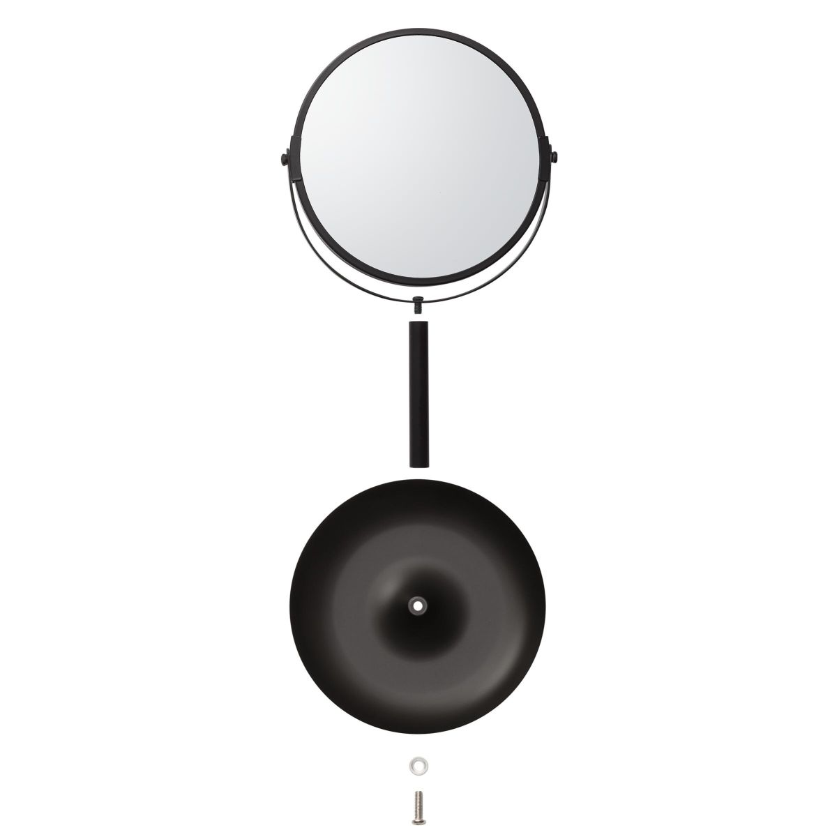 La finitura nera aggiunge un tocco industriale, che si integra perfettamente con gli interni moderni di bagni e toilette. La base stabile garantisce la sicurezza d'uso, mentre la possibilità di utilizzare lo specchio anche in camera da letto lo rende un accessorio versatile per la casa. Il prodotto non è adatto ad ambienti umidi come le docce. Il set include elementi di montaggio e istruzioni, e l'intera serie è coperta da una garanzia di 2 anni.