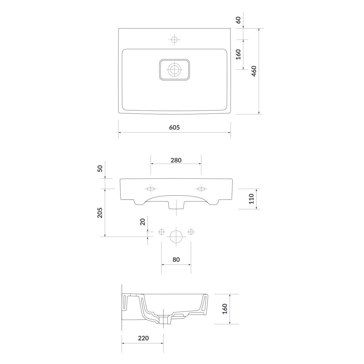 1. Lavabo Cersanit Virgo 60,5 x 46 cm (K118-006)