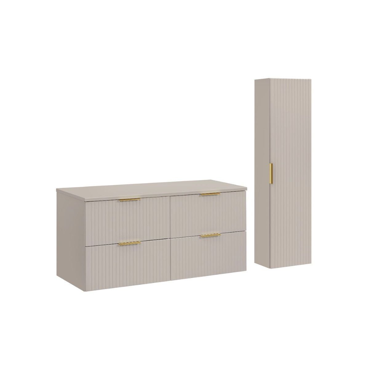 La collezione ADEL, nella nuova versione cashmere, è caratterizzata dalle proporzioni classiche dei mobili combinate con gli esclusivi frontali fresati verticalmente. Grazie a questa combinazione, i mobili di questa collezione sono universali e funzionano perfettamente sia in ambienti moderni che classici, mentre la loro elevata funzionalità garantirà il comfort anche agli utenti più esigenti. La collezione è composta da mobili per lavabo a parete di dimensioni 40 cm, 60 cm e 80 cm, da un montante alto e da piani d'appoggio di dimensioni 60 cm, 80 cm e 120 cm, che ci danno la possibilità di creare set sia più piccoli che più grandi. Un vantaggio di questa collezione è anche la possibilità di scegliere il colore delle maniglie, in quanto sono disponibili tre opzioni di colore per ogni mobile: oro lucido, cromo lucido e nero opaco. Questo ci permette di abbinare il colore delle maniglie alle rubinetterie, agli specchi con diversi colori di cornice o di rinnovare il look dei mobili in futuro. Vi invitiamo a conoscere la collezione ADEL.