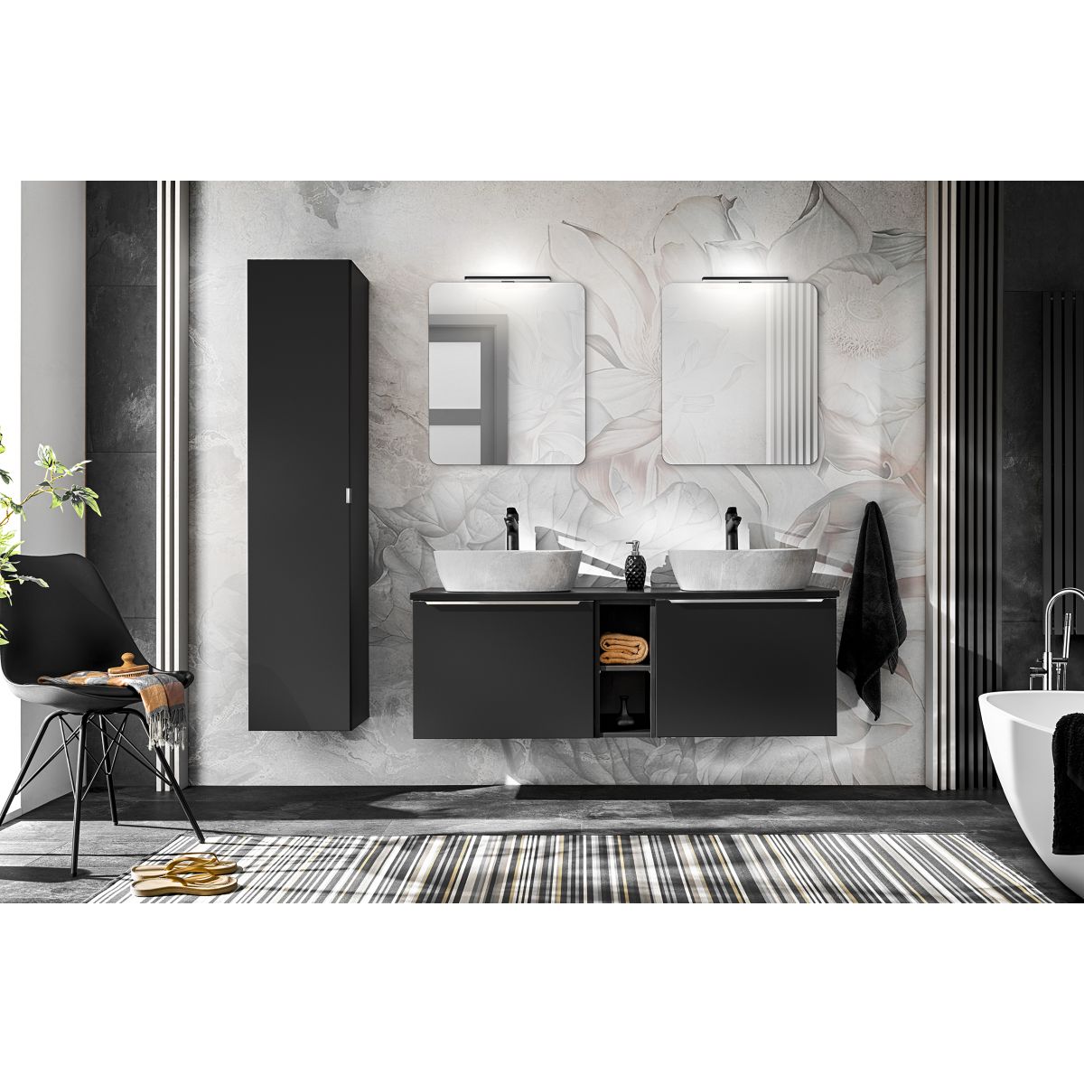 Santa Fe Black è un mobile solido progettato in stile moderno, che si integra facilmente in quasi tutti gli ambienti. I frontali e il corpo nel colore nero orchidea, abbinati alle maniglie cromate, rendono l'insieme leggero ed elegante. I mobili a specchio inclusi nella collezione ingrandiscono otticamente il bagno e forniscono ulteriore spazio di archiviazione. I mobili da bagno della collezione Santa Fe Black sono comodi da usare e funzionali. La collezione comprende armadietti sottopiano, barre alte, armadietti a specchio, ripiani inferiori e superiori. L'ampia gamma di mobili rende questa collezione una delle più modulari della nostra offerta, grazie alla quale si adatta a bagni di quasi tutte le dimensioni. Per soddisfare le aspettative dei nostri clienti, abbiamo aggiunto a questa collezione un organizzatore di cassetti. È funzionale non solo perché nasconde perfettamente l'apertura del sifone, ma offre anche ulteriore spazio utilizzabile nel cassetto.